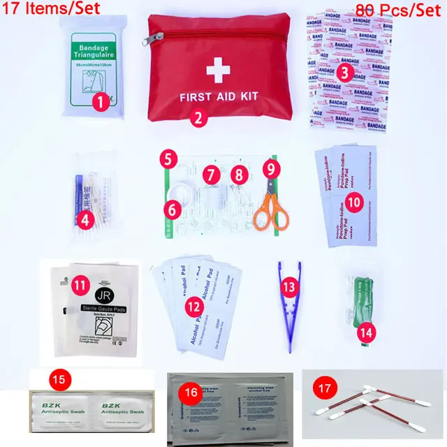 New 17 Items Set Mini Portable Outdoor Waterproof First Aid Kit For