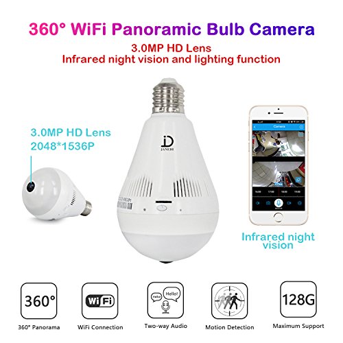 Janedi Wifi Bulb Camera 1536p Vr Panoramic Security Camera With 360