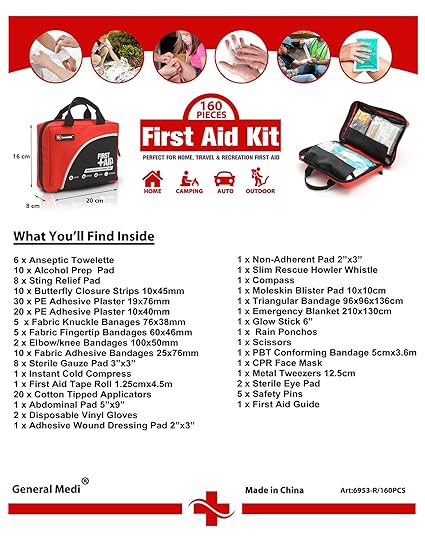 Amazon Com 160 Piece Compact First Aid Kit Bag Including Cold