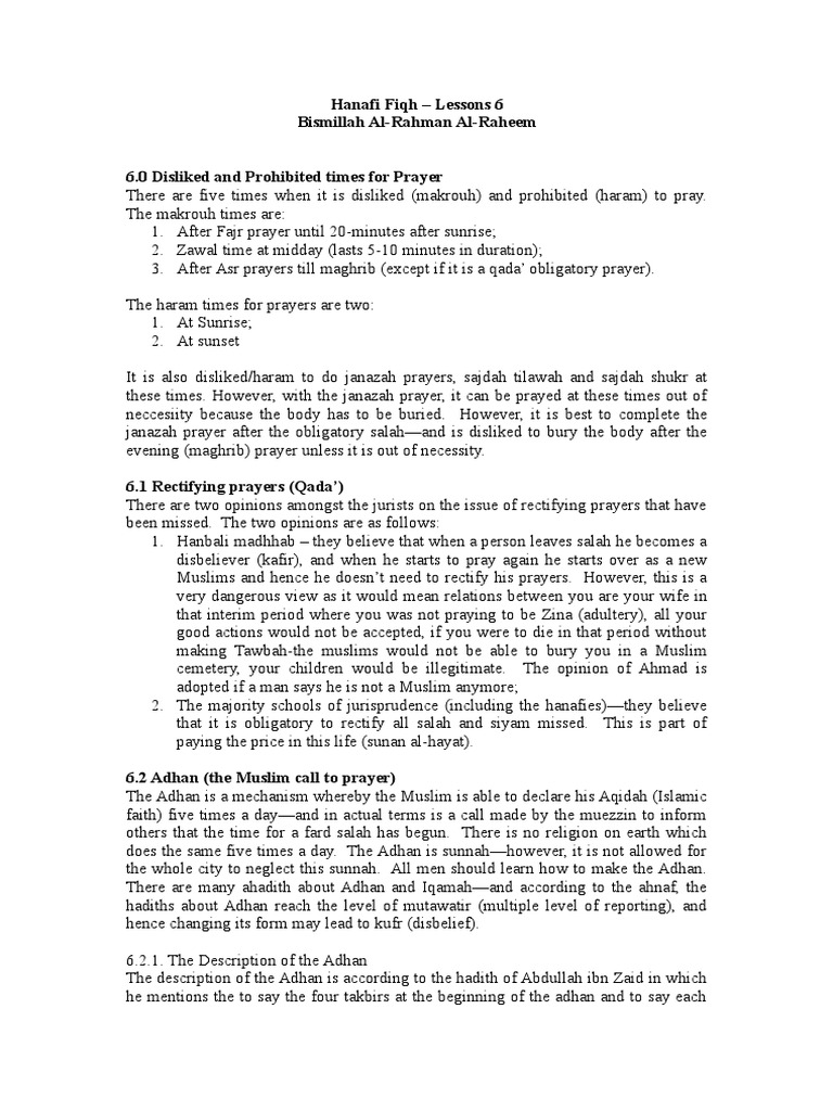 The Salat According To The Hanafi Madhhab Hadith Sahabah
