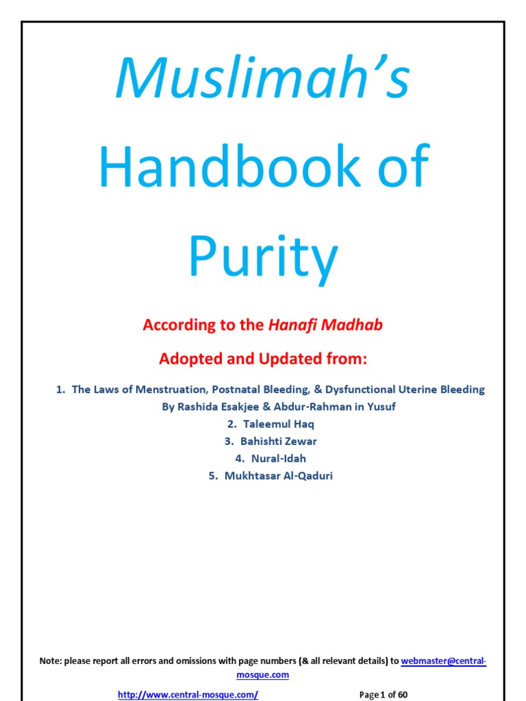 Muslimah S Handbook Of Purity Menstruation Virginity