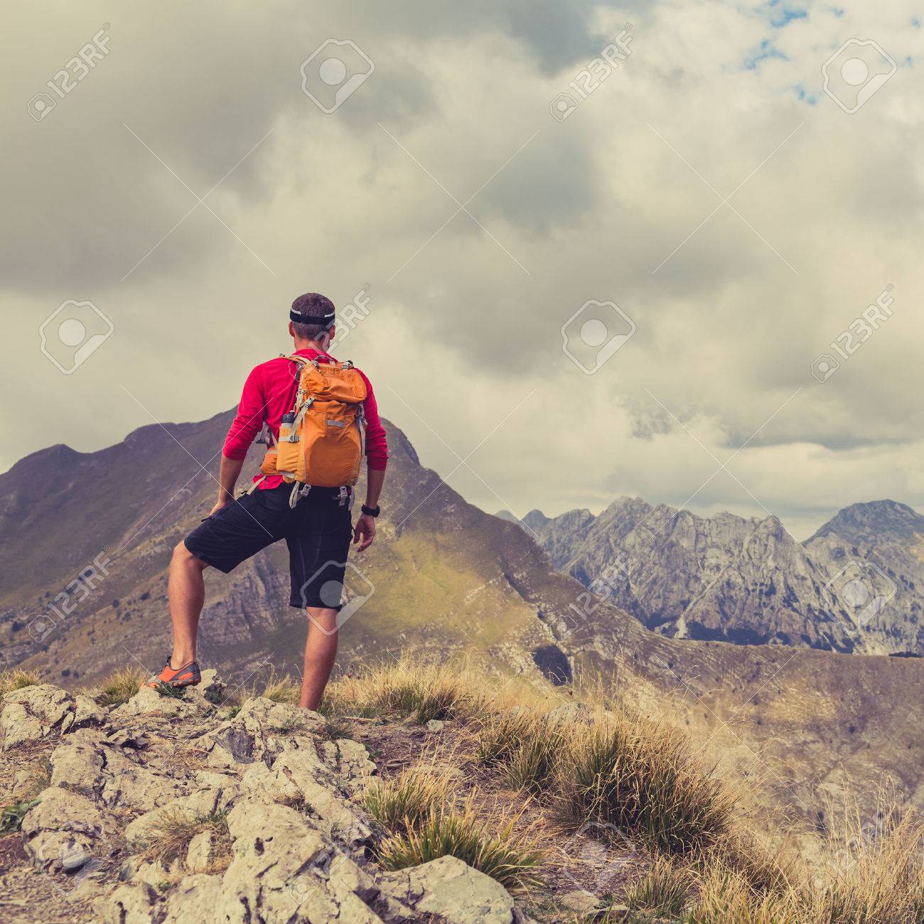 Hiking Man Or Trail Runner In Inspiring Mountains Stock Photo By Blas