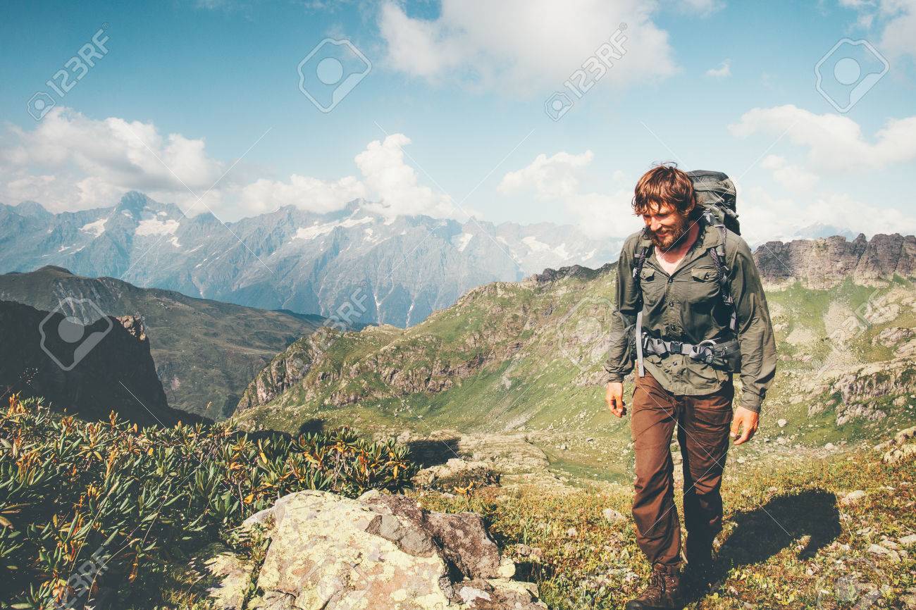 Traveler Man Hiking With Backpack Travel Lifestyle Concept Adventure