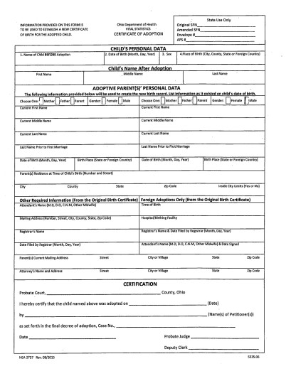 Adoption Birth Certificate Ohio
