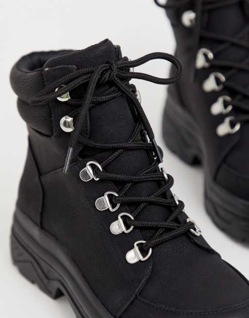 Black Contrast Cuff Lace Up Hiker Boots New Look Out Of Stock