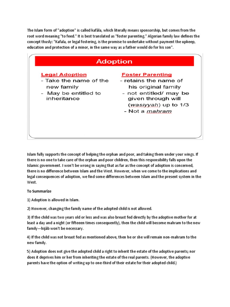 Concept Of Adoption In Islam Nature And Islamic Rules From Quran