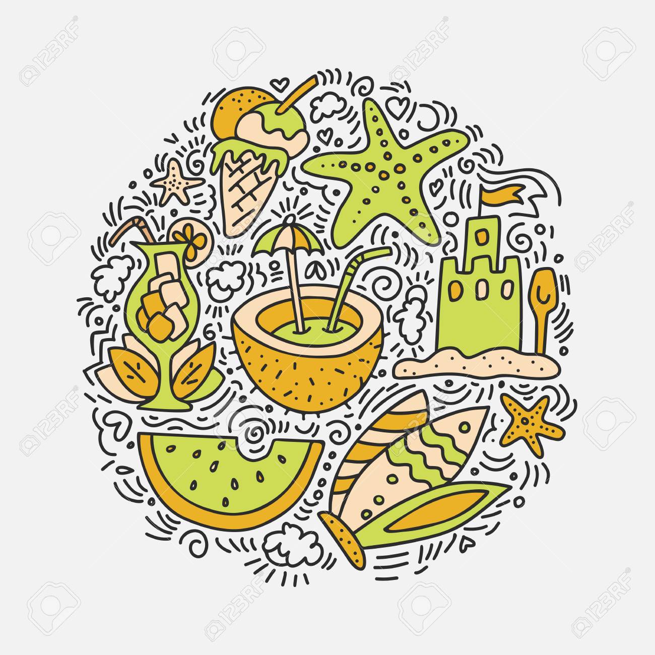 Summer And Beach Hand Draw Icon Concept Travel Summer Icons