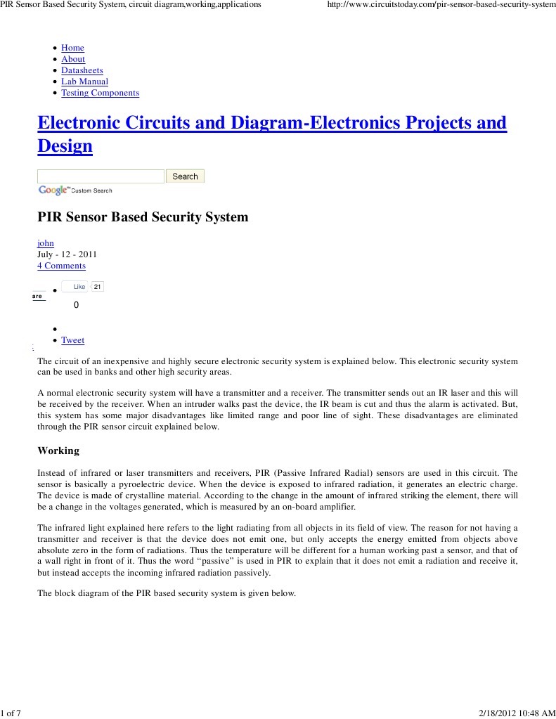 Pir Sensor Based Security System Circuit Diagram Working Applications Security Alarm Electronic Circuits