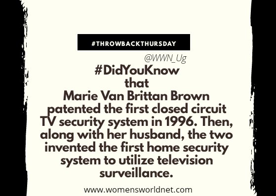 Women S World Network On Twitter Throwbackthursday Didyouknow That Marie Van Brittan Brown Patented The First Closed Circuit Tv Security System In 1996 Then Along With Her Husband The Two Invented The First